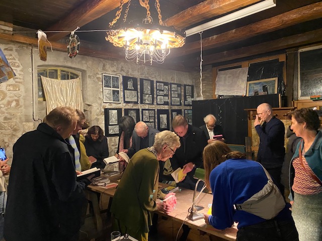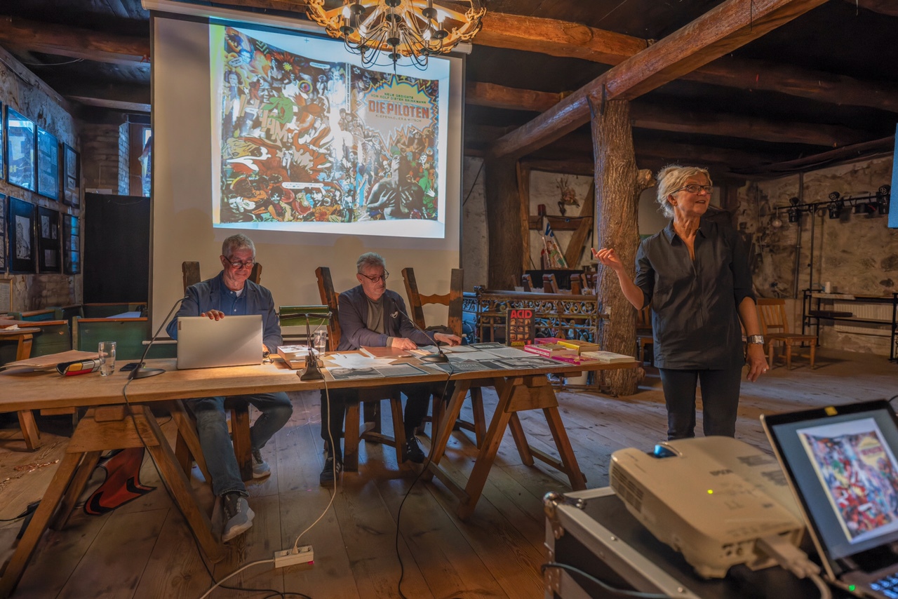 Christian Döring (im ersten Foto links) bei der Bücherschau der Anderen Bibliothek nach seiner Lesung