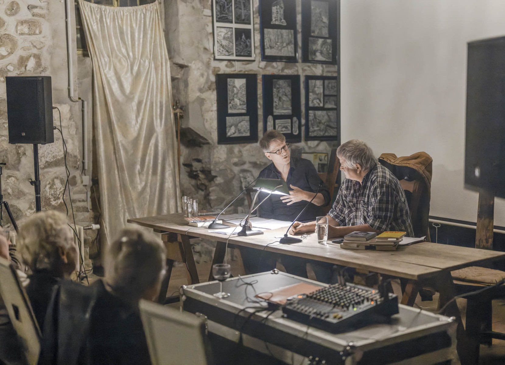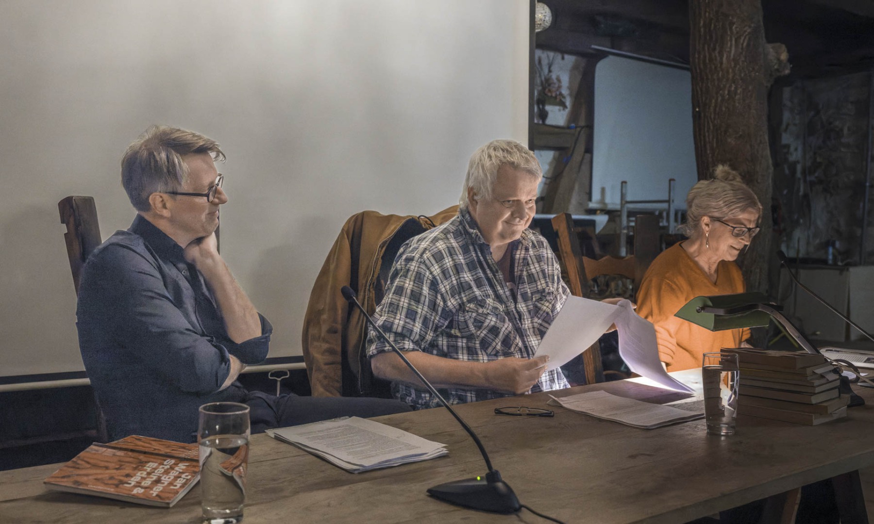oben links: Henryk Gericke, Lothar Fiedler / oben rechts: Cornelia Jentzsch, Klaus Miachael, Jürgen Schneider, Lothar Fiedler / unten rechts: Tina Bara, Lothar Fiedler11. November 2023 | Matthias Nawrat (Fontane-Literaturpreisträger 2023) : Gebete für meine Vorfahren